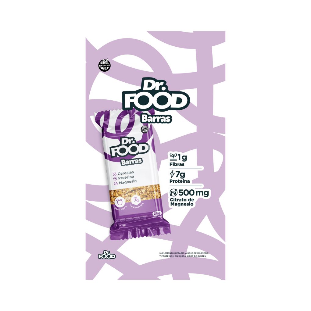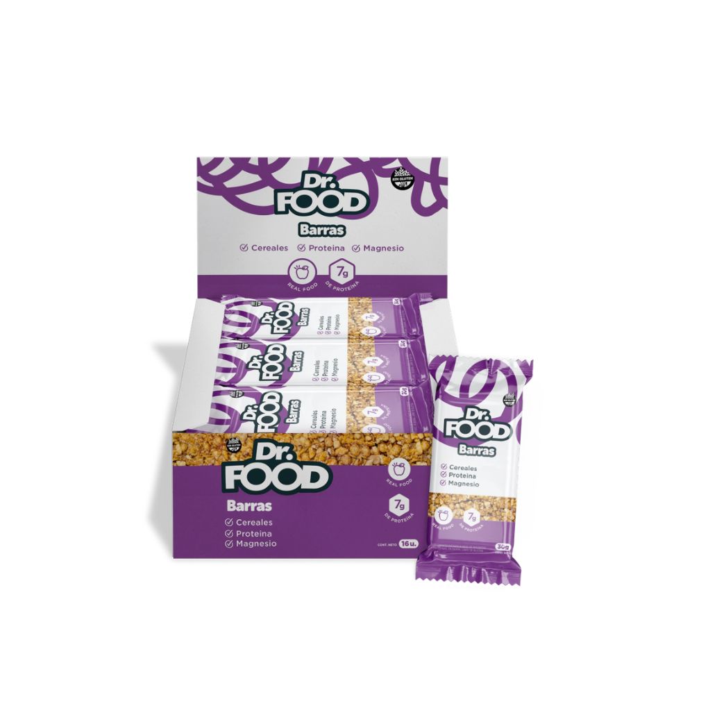Las barras Dr Food son alimentos funcionales que combinan cereales, semillas, proteínas vegetales y citrato de magnesio en un snack práctico.