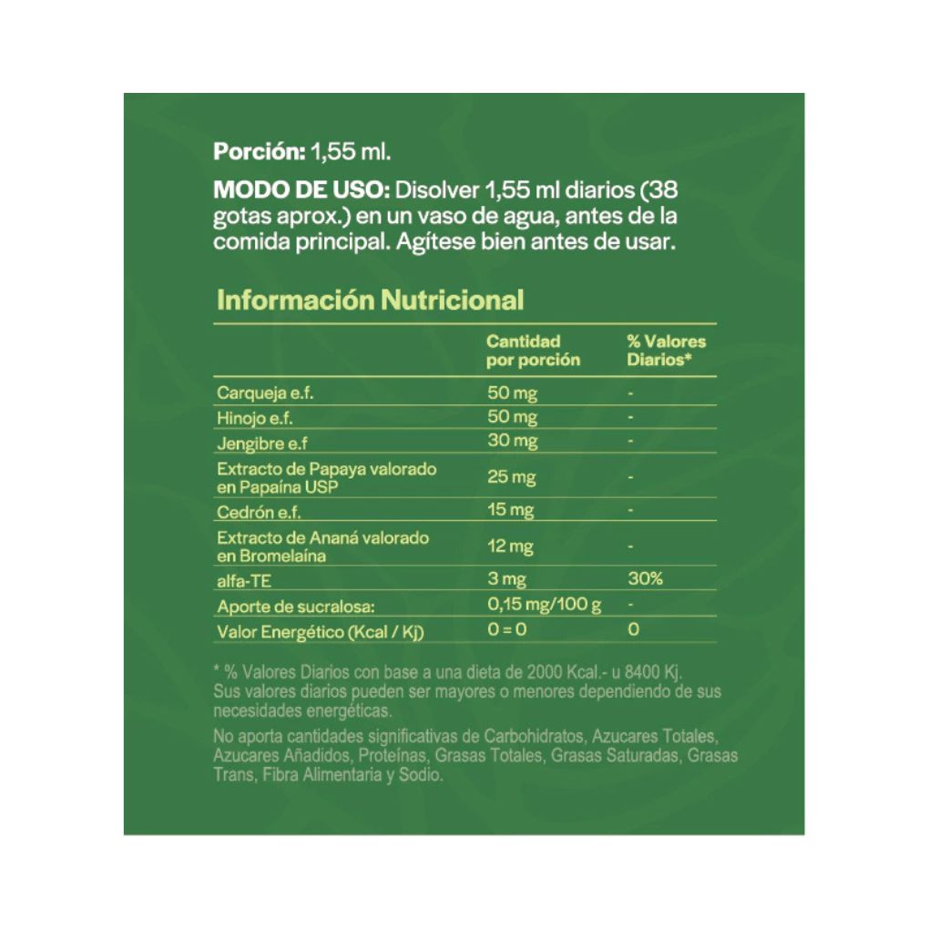 💧 Modo de uso: 38 gotas en agua antes de la comida principal.