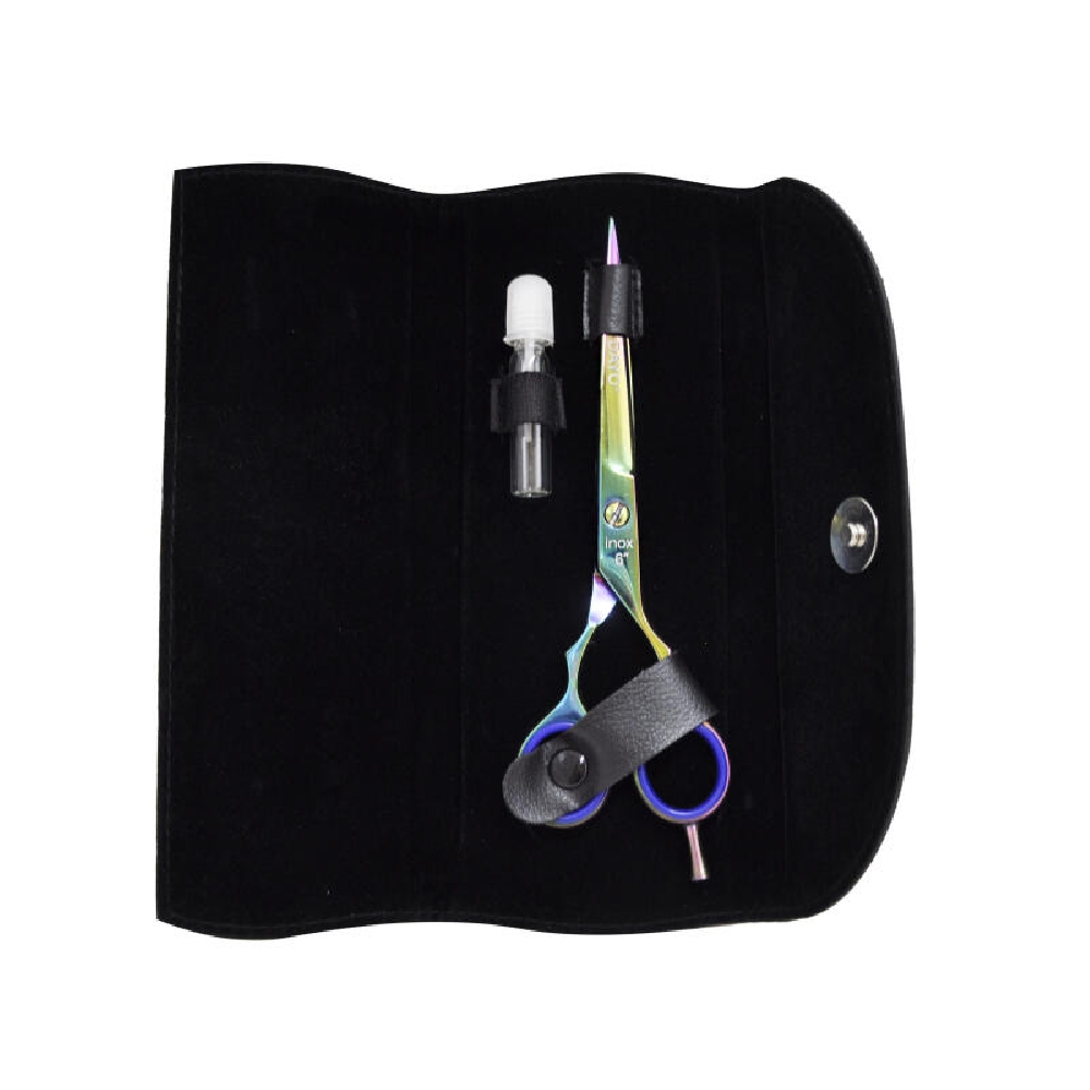 El titanio es un material resistente que garantiza la durabilidad y la resistencia a la corrosión de las tijeras, prolongando su vida útil. Vienen presentadas en un estuche de simil cuero y terciopelo.